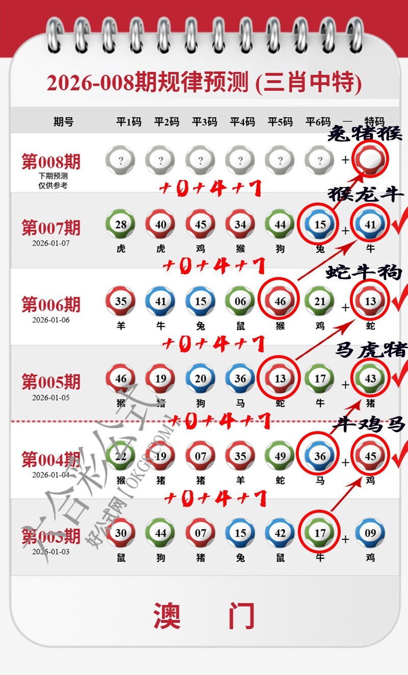 007期:【高手秘彩】《④肖⑧码》10期中7期