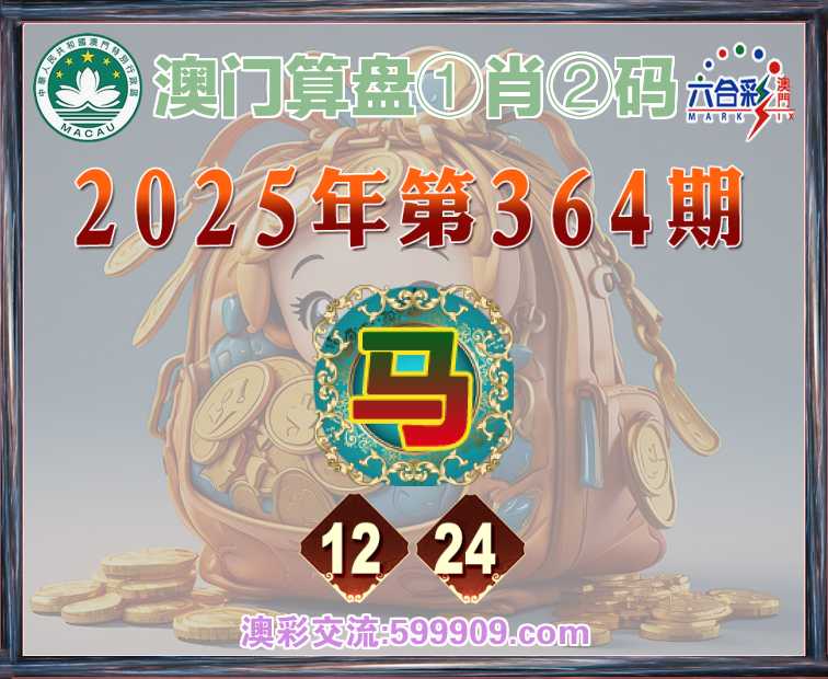 364期:『澳门算盘』 ①肖②码】【12.24】开:马12